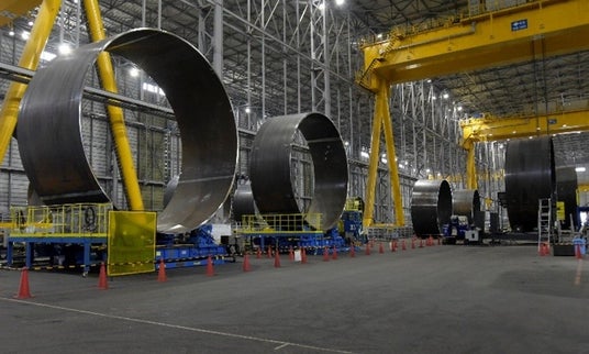生産を担う笠岡モノパイル製作所は、当社で100年続く橋梁など大型鋼構造物の製造で培った加工・溶接技術をベースに、JFEスチールの風力発電用大単重厚鋼板「J-TerraPlate(R)」を使用し、重量約2,500tの超大型モノパイルを年間50本程度、安定的に量産することができる国内唯一のモノパイル生産拠点です。