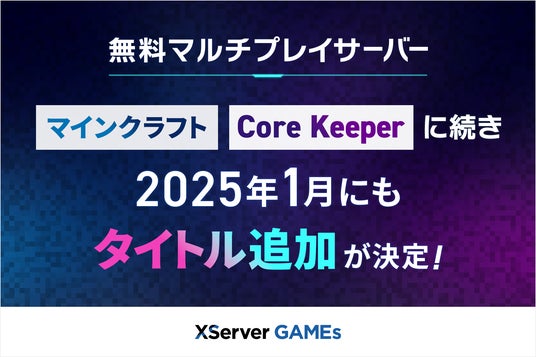 エックスサーバー株式会社(所在地:大阪市北区、代表取締役 小林 尚希)は、2024年12月20日、ゲームサーバー専用サービス『XServer GAMEs』の無料マルチプレイサーバーにおいて、「マインクラフト」「Core Keeper」などに続き、2025年1月以降にも複数タイトルを追加することを決定しました。