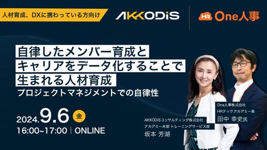 人事DXシステム「One人事」を提供するOne人事株式会社(本社:東京都品川区、代表取締役社長:唐沢雄三郎)は、企業および組織へエンドツーエンドのコンサルティングサービスを提供するAKKODiSコンサルティング株式会社との共催セミナー「自律したメンバー育成とキャリアをデータ化することで生まれる人材育成」への登壇が決定したことをお知らせします。