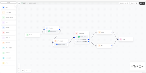 自然言語での指示やドラッグ&ドロップ操作のみで、業務ワークフローを構築することができます。