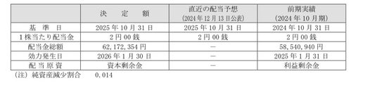 当期につきましては、株主優待や新株発行の費用、投資有価証券評価損の計上などにより、親会社株主に帰属する当期純損失を計上いたしましたが、保有する不動産物件の売却を積極的に行い、営業キャッシュ・フロー2,357百万円と、現金ベースで大幅な黒字を確保いたしましたので、資本準備金の取崩しによる資本剰余金を原資として、前期同様1株当たり2円00銭の配当を実施させて頂きます。