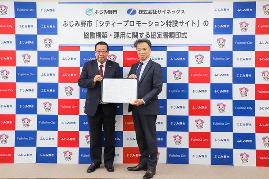 ふじみ野市と株式会社サイネックスは、官民連携事業による「シティープロモーション特設サイト」の協働構築および運用に関して、協定書の調印式を行いました。