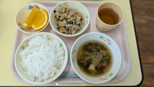 すべての公立園と一部の民間園の給食では、栄養価の高い「金芽米」を