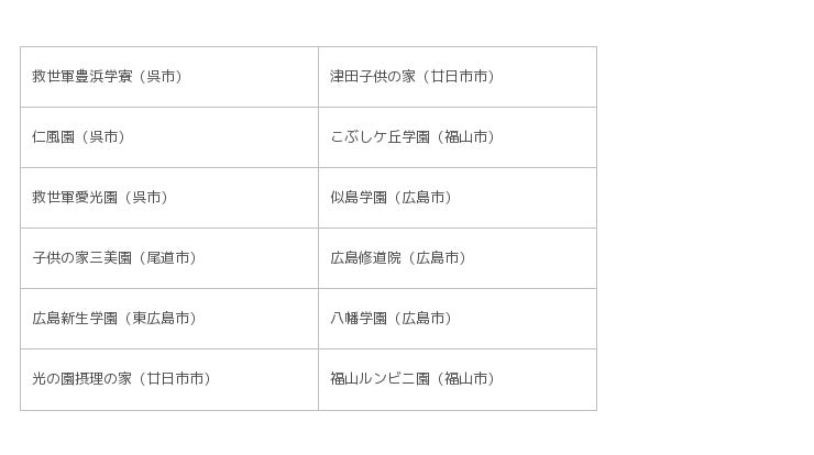・ 広島県内の社会福祉法人として組織化されている児童養護施設(12施設)