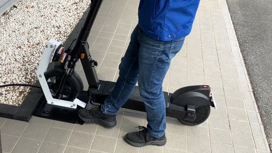 本製品は、従来の電動キックボードと異なり、専用のワイヤレス充電ステーションに置くだけで簡単に充電が可能です。さらに、Qi規格のワイヤレス充電機能を搭載し、スマートフォンの充電も可能となっています。