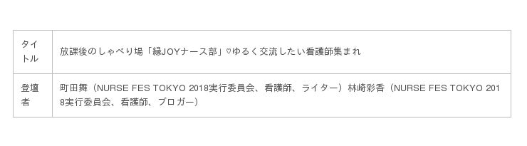 『NURSE FES TOKYO 2018』特設サイト:http://nurse-senka.jp/html/nursefes/tokyo2018/