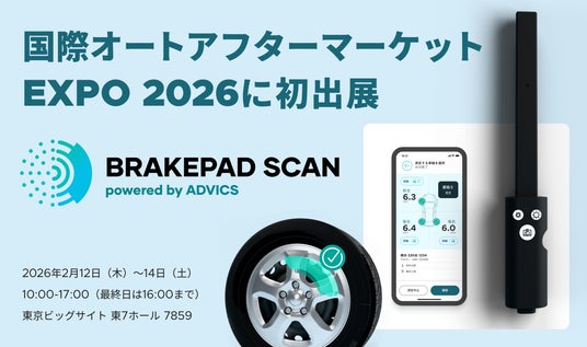 モビリティデータを活用したサービスを提供する株式会社スマートドライブ(本社所在地:東京都千代田区、代表取締役:北川 烈、以下「当社」)は、2026年2月12日(木)~14日(土)に東京ビッグサイトで開催される「第23回 国際オートアフターマーケットEXPO2026」(主催:国際オートアフターマーケットEXPO実行委員会)に初めて出展し、2025年12月に発表したブレーキパッド残量可視化サービス「BRAKEPAD SCAN powered by ADVICS」を展示することをお知らせいたします。