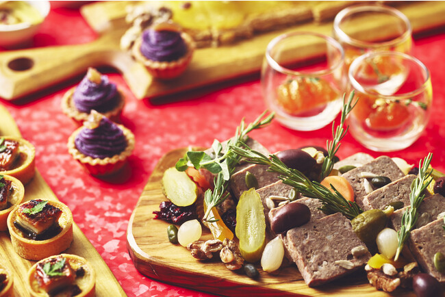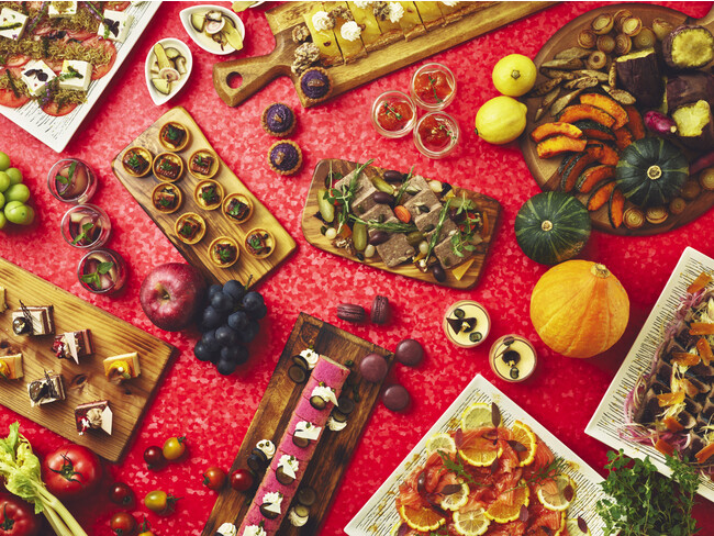 15種のアンティパスティと選べる7種のメインディッシュは、イタリアングリル「メロディア」シェフ山本 健太郎による、ヘルシーに体の中から元気になれる、オリジナリティーあふれるシーズナルクリエイションを。ポークレバーやうなぎ、サーモンやアーモンドなどビタミンを豊富に含む食材との相性を考え抜いたセレクションです。デザート10種は、エグゼクティブペストリーシェフ長田 学によるオータムハーベストならではのスイーツ。栗や紅イモ、洋梨などをカラフルでスタイリッシュにお届けします。さらにチーズ、ハーブ、フルーツなど、多種多様のビタミンチャージがかなうストリングスならではの嬉しいランチブッフェです。