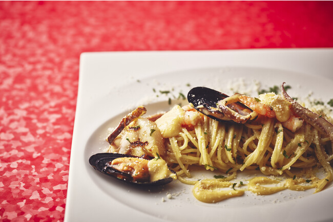 海老や烏賊、ムール貝などの海鮮エキスとクリーミーなカルボナーラは間違いなしの美味しさです。