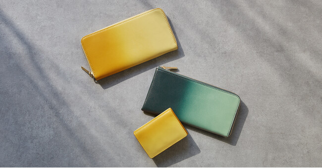 今回新色が誕生したのは、日本の四季折々の風景を多彩なグラデーションで表現しているイロドリシリーズ。職人たちの熟練した手仕事によって、日本の美しい春夏の情景をイメージした2色が生まれました。ひとつひとつ表情の違うグラデーションレザーが織りなす、唯一無二の彩りとの出会いをお楽しみいただけます。