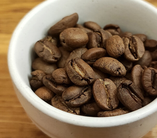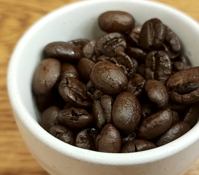 焙煎工程で後半。インドネシアのコクと苦味を引き出し、キレの良い余韻が特徴の深煎りです。