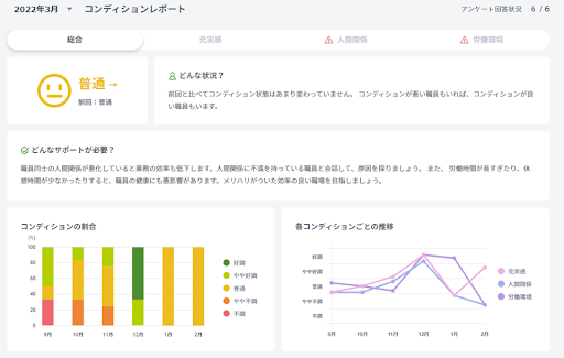 各園の職員に毎月送られるコンディションアンケートへの回答内容から、法人全体・施設ごと・職員それぞれのコンディション状況を確認できます。それぞれのコンディション状況にあわせ、どんなサポートが必要なのかをご提案いたします。