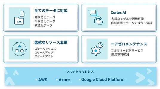 Snowflakeは、こうした課題に対応するために設計されたクラウドネイティブなデータプラットフォームです。同社が掲げる「データ戦略なくしてAI戦略はない」※というメッセージはAIや高度なデータ活用を実現するには、まず信頼性の高いデータ基盤の整備が欠かせないという考えを示しています。