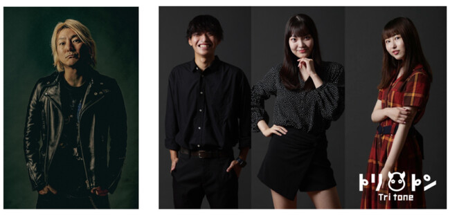 Tri=3つ、tone=音色、3人の音色が合わさって一つの音楽を作ることを意味する。松隈氏が楽曲プロデュースした、本学のテーマソング「I(ハート)NKD※」、“若者へのエール”をテーマに制作した「Young and Beautiful」を歌う。