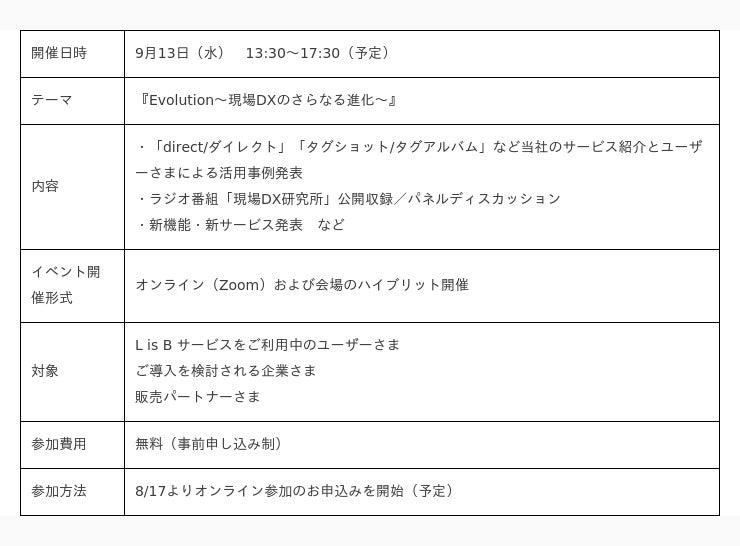 株式会社L is B(エルイズビー 本社:東京都千代田区、代表取締役社長CEO:横井 太輔、以下L is B)は、L is Bのサービス事例発表会となるユーザーカンファレンス「L is B User Conference (LUC2023)」を2023年9月13日に開催をすることをお知らせいたします。