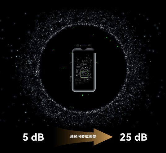 ステップレスなAI駆動フィルタにより、風切り音や交通騒音などを最大25dBまで自動除去。初代Lark MAXのENC技術は固定モードでしたが、Lark MAX 2では環境に応じた細かな調整が可能になりました。