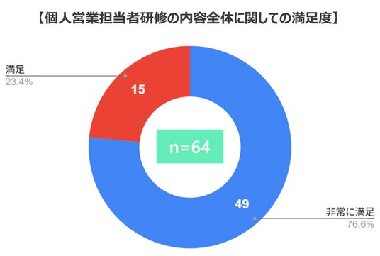 研修後アンケートでは、全体を通し100%が「満足」(非常に満足・満足)と回答。特に、課題抽出のプロセス整理、顧客に寄り添う営業姿勢の理解、提案行動の具体化などが高く評価され、現場定着に向けた手ごたえが得られました。