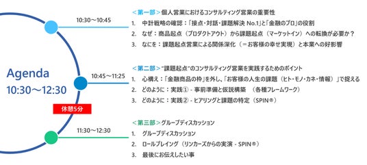 研修は、課題起点型のコンサルティング営業スキルを体系的に習得するため3部構成で実施。