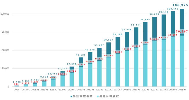 これにより、G検定の累計受験者数は106,975名、累計合格者数は70,267名になりました。