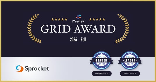 CX改善プラットフォームを提供する株式会社Sprocket(本社:東京都品川区、代表取締役:深田 浩嗣)は、アイティクラウド株式会社が運営するIT製品レビュープラットフォーム「ITreview(アイティレビュー)」の「ITreview Grid Award 2024 Fall」において、Web接客ツール部門/ABテストツール部門で最高位の「Leader」を受賞いたしました。
