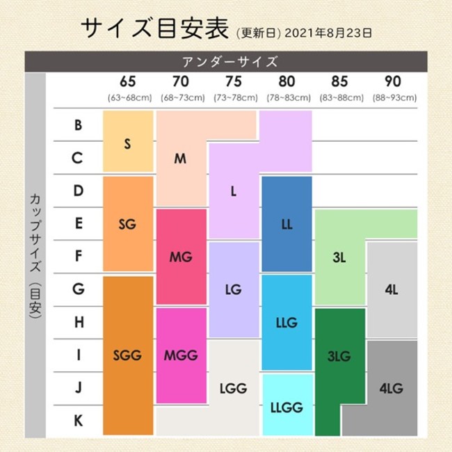※通常のブラサイズだとB65~K90に該当。