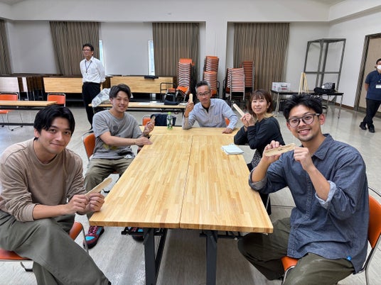 今回の活動は、当社グループの社員22名が参加し、10月10日(木)、11日(金)の2日間で実施しました。間伐が必要な樹木の伐採作業に従事したほか、森林の役割や間伐活動の意義などについての講義受講、椿の木から靴ベラを製作するワークショップ、地域の方々との交流会を行いました。