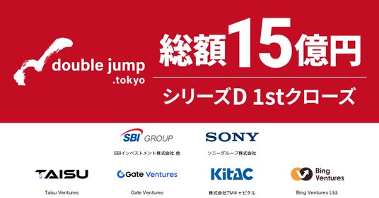 double jump.tokyo株式会社(本社:東京都新宿区、代表取締役:上野広伸・満足亮、以下「double jump.tokyo」)は、SBIインベストメントをリード投資家として1stクローズで15億円超の資金調達を実施したことをお知らせします。調達した資金はブロックチェーンゲーム、ブロックチェーン基盤および周辺サービスの開発/支援並びにそれに伴う人材や組織体制の強化に活用いたします。