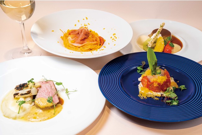 3月2日(水)からは春メニューに一新、ランチ&ディナーのコースで前菜4種、パスタ5種、メイン4~5種、デザート5種をご用意し、それぞれお好みの料理をお選びいただけます。