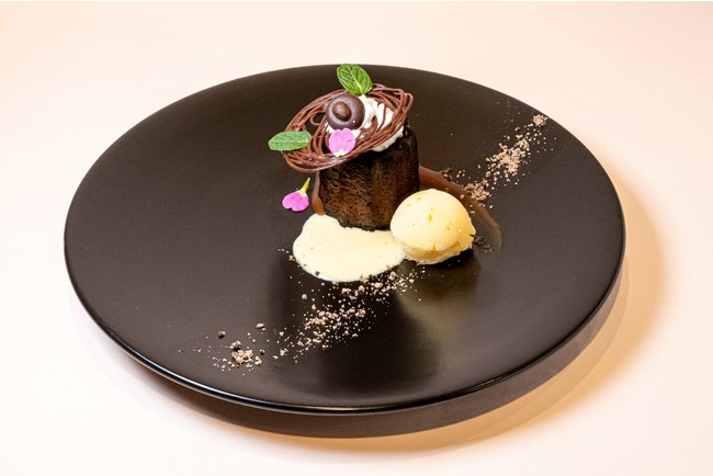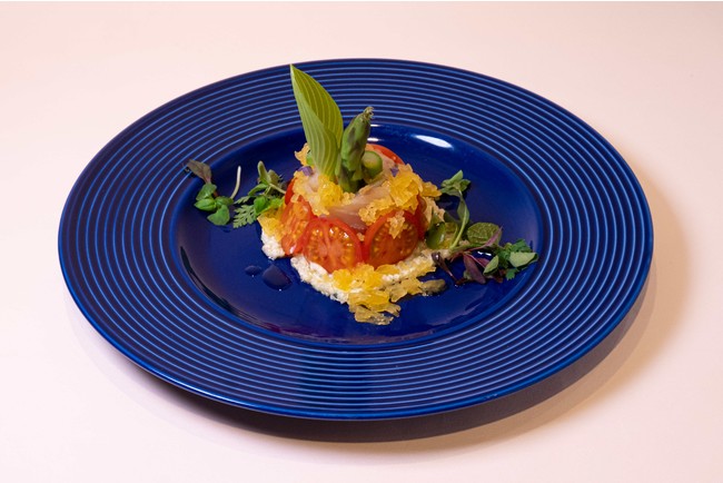軽くスモークした桜カジキと甘み・酸味が豊かな味わいのミニトマト「優糖星」を合わせ、シャルロット(貴婦人の帽子のような形)仕立てに。春らしい一皿です。