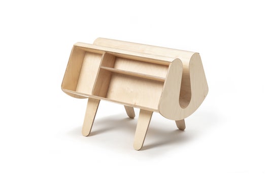 左右の棚と4本の脚がパニアを背負うロバのように見えることからドンキーと名付けられ、後にイギリスの出版社“Penguin paperbacks”の本がぴったり収まることから、ペンギンドンキーに改名されました。