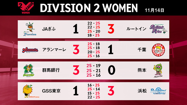 バレーボール国内最高峰リーグ V.LEAGUE【11月14日の試合結果】