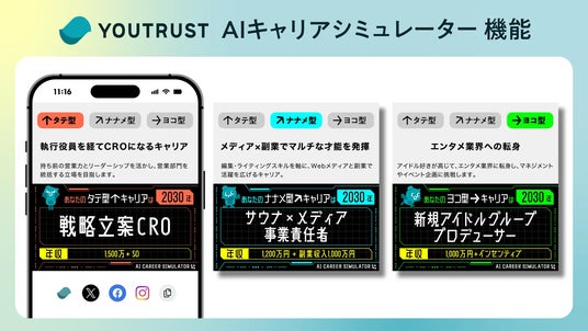 動画や記事の制作・配信に加え、キャリアSNS「YOUTRUST」と直結した設計により、情報に触れたその先の行動につながる体験を提供しています。