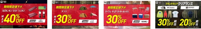 テント・チェア・テーブル・クーラーボックスは最大30%OFF!