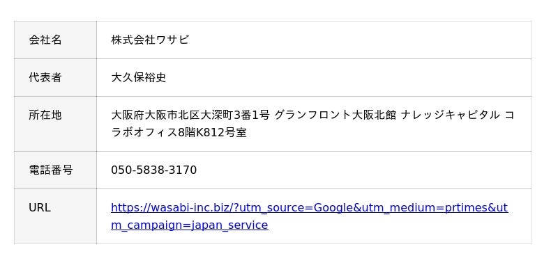 担当者:株式会社ワサビ 広報担当
