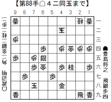 ▲4二銀不成 △同 飛 ▲同 馬 △同 玉 まで88手で後手の勝ち