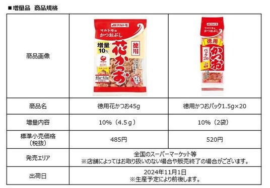日頃のご愛顧に感謝を込めて、3年ぶりの増量キャンペーンとなります。年間で最もだし・かつお節需要の高まる年末年始に向けて本キャンペーンをご活用ください。