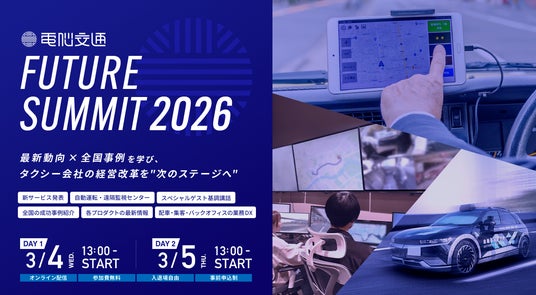 タクシー業界のDXを推進する株式会社電脳交通(本社:徳島県徳島市、代表取締役社長:近藤 洋祐、以下「電脳交通」)は、タクシー事業者様を対象としたオンラインイベント 「電脳交通 FUTURE SUMMIT 2026」 を、2026年3月4日(水)・5日(木) の2日間にわたり開催いたします。