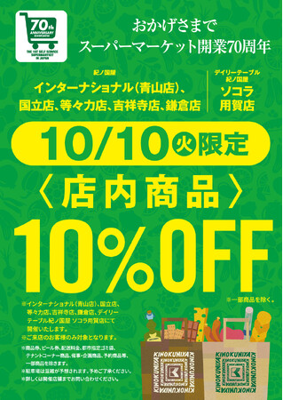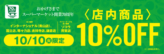 10月10日(火)、日頃のご愛顧に感謝を込めてお得なセール「10%OFFセール(謝恩セール)」を、インターナショナル(青山店)、国立店、等々力店、吉祥寺店、鎌倉店、SOCOLA用賀店の6店舗で開催いたします。