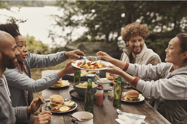 青空の下、キッチンがない環境でも使いやすいOXO Outdoorのクッキング&クリーニングツールが、アウトドアシーンでの素晴らしい食事体験を提供します。