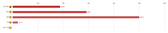 レイクの在籍確認の満足度評価では、「普通」との評価が50%で最も多かった。