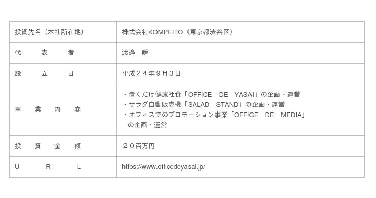 KOMPEITOは、全国各地の地産野菜をオフィスに取り入れる“置くだけ健康社食”「OFFICE DE YASAI(オフィスで野菜)※」を運営するスタートアップ企業です。