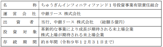 ちゅうぎんインフィニティファンドによる