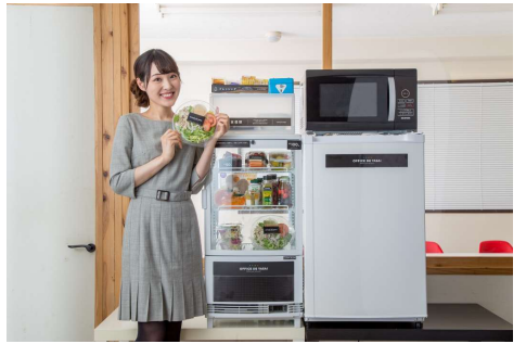 オフィスに冷蔵庫を設置するだけで、健康と美味しさにこだわったサラダやフルーツ、お惣菜などが定期的に