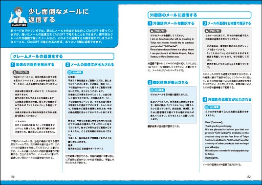 「AIって難しそう…」という初心者の方も安心! ChatGPTの基本的な使い方をマンガで楽しく学べます。初めてChatGPTを使う方でも、「ビジネスメールを作成したい」「日常のちょっとした疑問を解決したい」といった具体的なシチュエーションに沿って、わかりやすく説明しています。