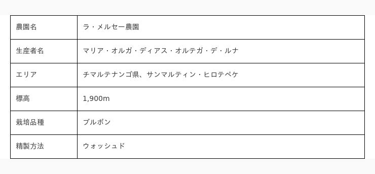 今回は、ラ・メルセー農園の豆を中深炒りに仕上げ、豆の持つ風味を引き出し、より一層おいしさを引き立たせています。その味わいは、レッドアップルや洋ナシのような印象と、ミルクチョコレートのような甘さを感じます。特別な時間をゆったりと過ごす際の、至福の一杯をお楽しみください。