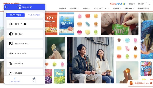 株式会社Kiva(本社:東京都中央区、代表取締役:野尻 航太、以下 Kiva)は、カンロ株式会社(本社:東京都新宿区、代表取締役社長:村田 哲也、以下 カンロ)のコーポレートサイトにウェブアクセシビリティツール「ユニウェブ」が導入されたことをお知らせいたします。