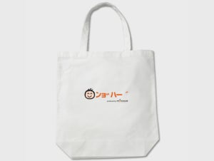 特徴:ショッパーズ長浜店様とのコラボ商品で、エコバックとしてもご利用いただけるトートバックです。なんと読めばいいか分からない看板として話題になった「ンョ゛ハー ゛」のロゴがポイント。
