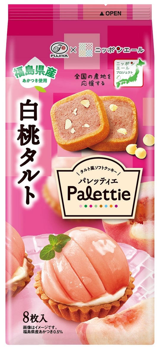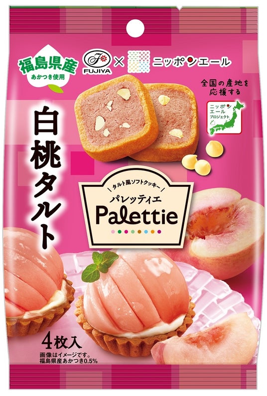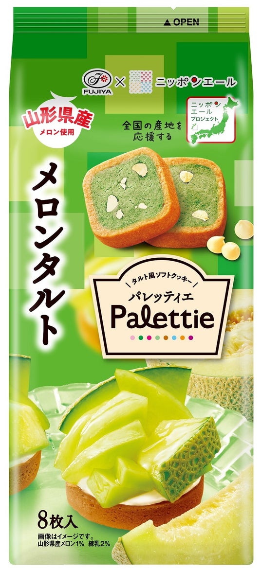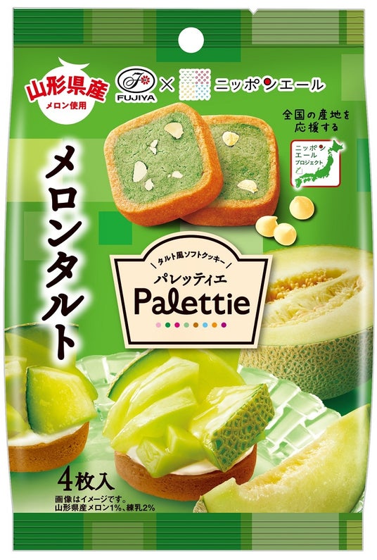 不二家が自信を持ってお届けするタルト風ソフトクッキーブランド「パレッティエ」より、“東北産地応援”をテーマに「ニッポンエール」とコラボした商品が2種類登場します。福島県産あかつきと山形県産メロンの、フルーティーな味わいをお愉しみいただけます。