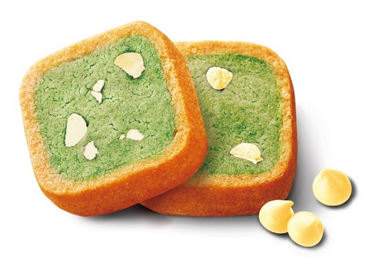 ・山形県産メロンピューレと練乳、ホワイトチョコチップを練り込んだしっとり生地を香ばしいサックリ生地と合わせ焼き上げた、彩り豊かなプチタルトをイメージしたクッキー