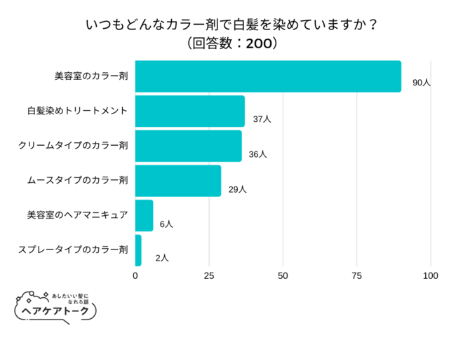 200人にアンケートを行ったところ、「美容室のカラー剤」と回答したのは全体の45%でした。